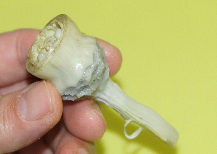 (このアーティチョークは若くてまだ花ができてないので、参考にすくって取る真似)