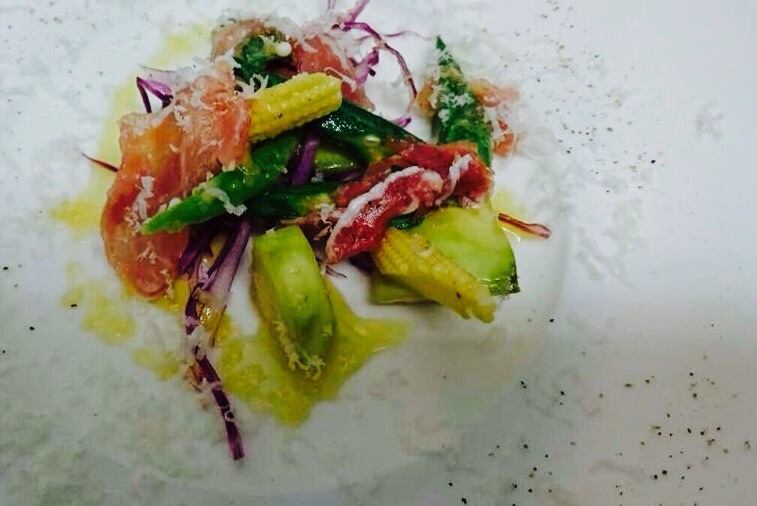 青森県産アオリイカのラグーソースに ないだ農園のズッキーニを使って頂いた。